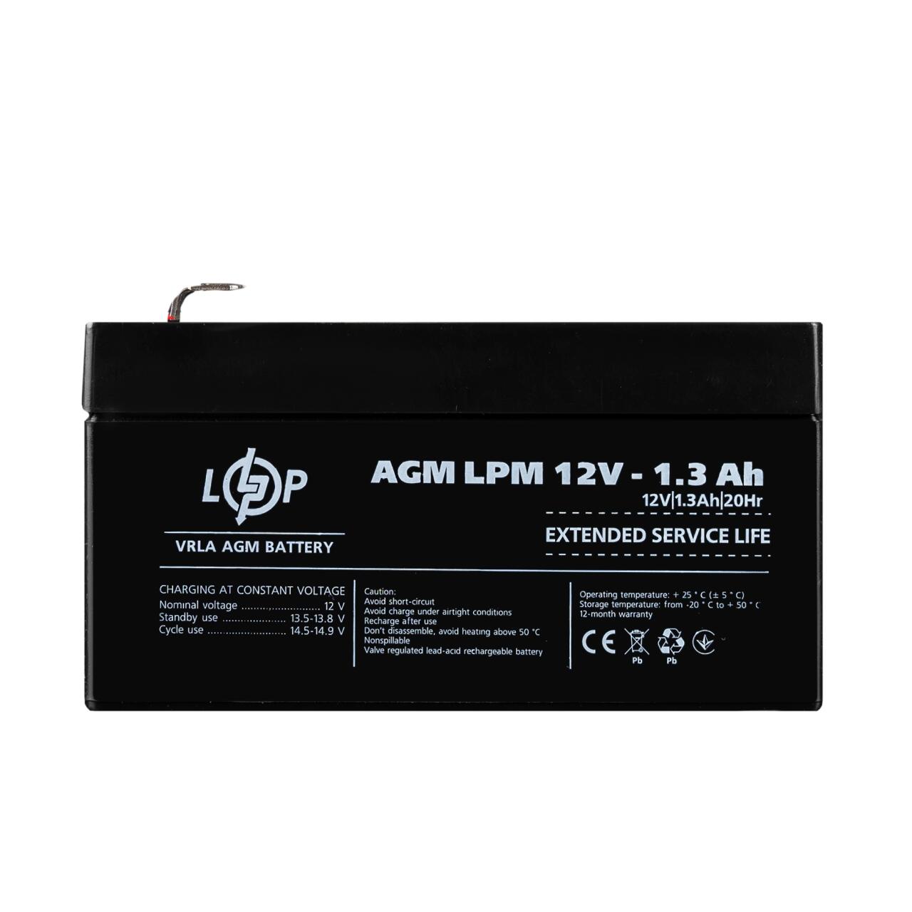 Аккумулятор AGM LPM 12V - 1.3 Ah