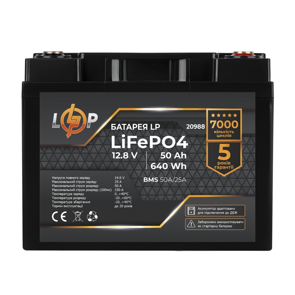 Аккумулятор LP LiFePO4 для ИБП 12,8V - 50 Ah (640Wh) (BMS 50A/25А) пластик