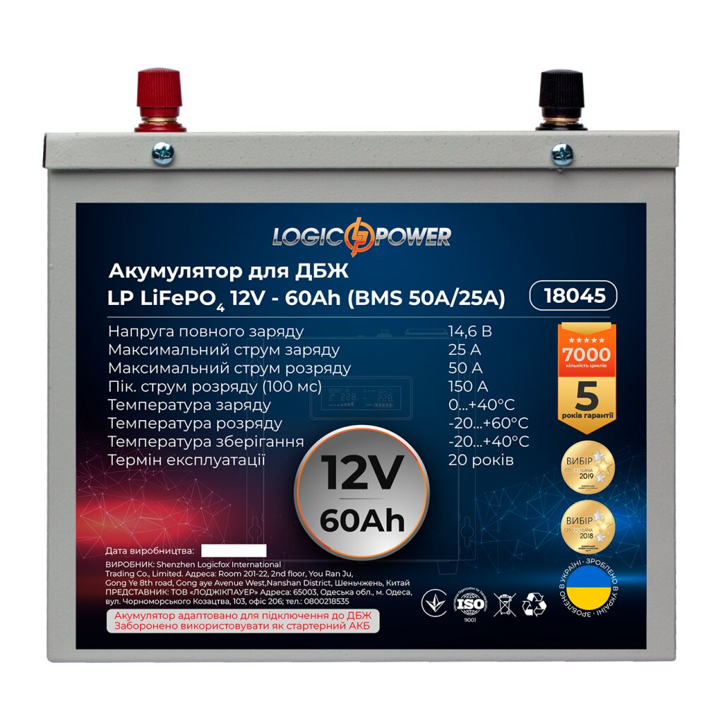 Аккумулятор LP LiFePO4 для ИБП 12V - 60 Ah (BMS 50A/25A) металл