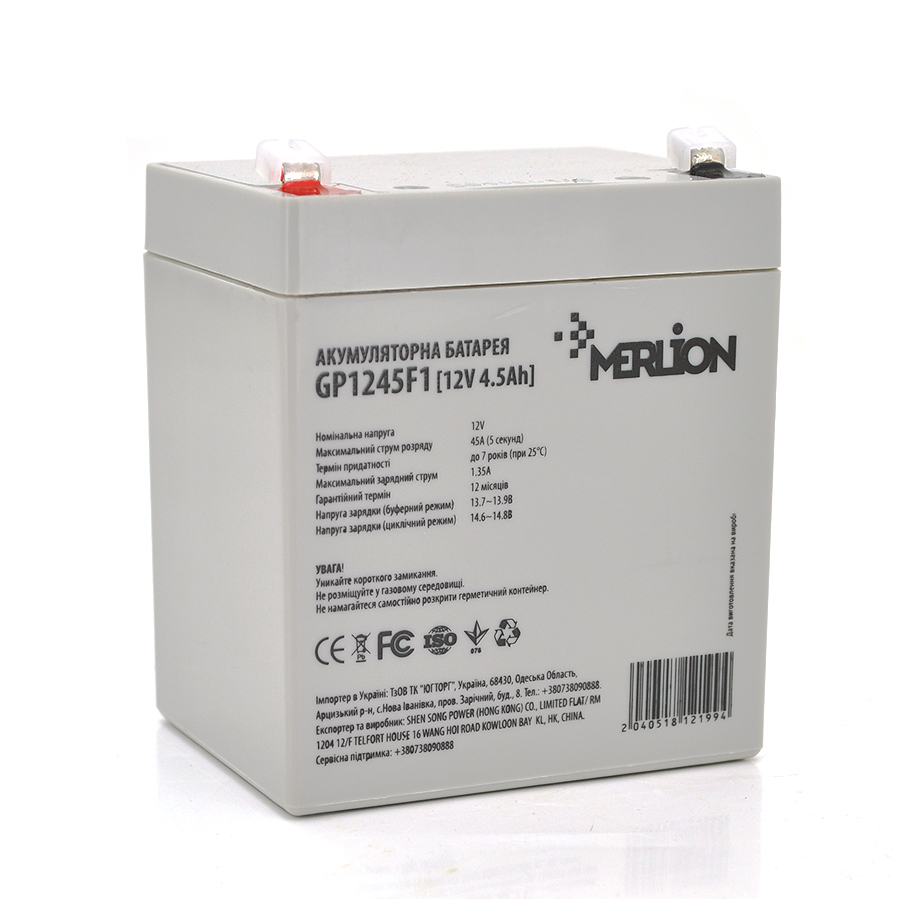 Аккумуляторная батарея MERLION AGM GP1245F1 - используется в устройствах с небольшим потреблением энергии. Поэтому необходимо позаботиться о качественном аккумуляторе, для обеспечения надёжной, долгосрочной работы устройств. Аккумуляторная батарея MERLION - твой выбор! Применение: