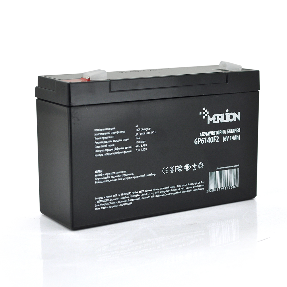 - Материал корпуса: ABS MERLION GP6140F2 — универсальный аккумулятор, сочетающий высокое качество сборки, надёжность и доступную стоимость. Подходит для систем, где требуется бесперебойное питание и надёжная автономная работа в течение длительного времени.