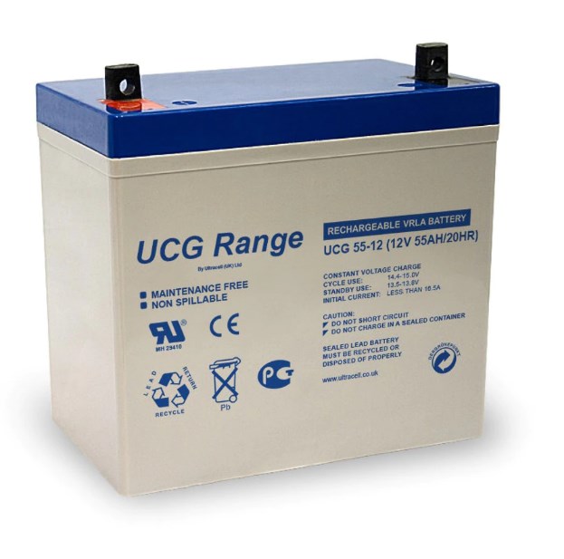 Аккумуляторная батарея Ultracell UCG55-12 изготовлена по технологии Ultracell (GEL) – это разновидность аккумуляторов, в которых жидкий электролит доведен до желеобразного состояния благодаря добавлению в него соединений кремния. Применение: