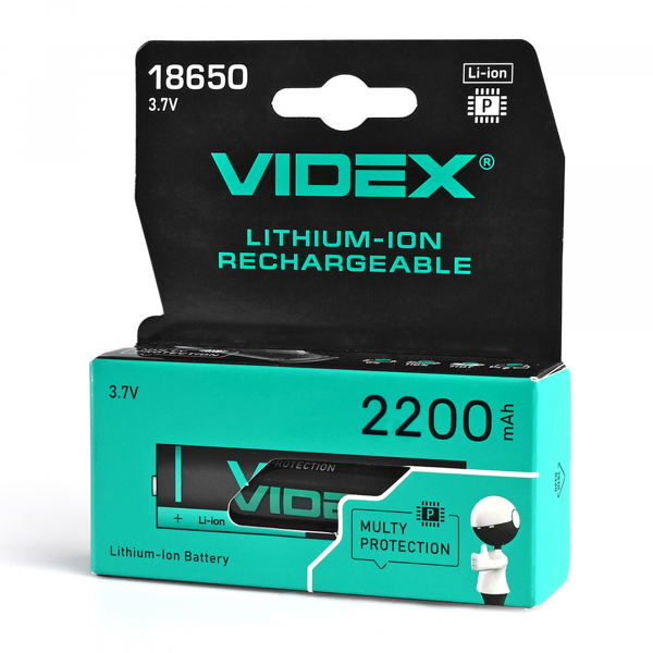 Акумулятор Videx літій-іонний 18650-P (захист) 2200mAh color box/1шт