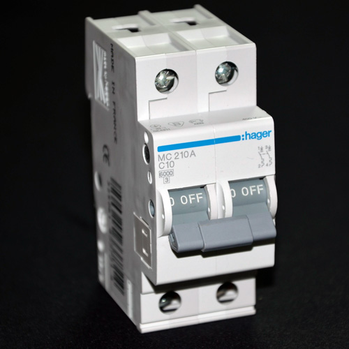 Hager MC210A автоматический выключатель 2P 6kA C-10A 2M