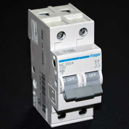 Hager MC220A автоматический выключатель 2P 6kA C-20A 2M