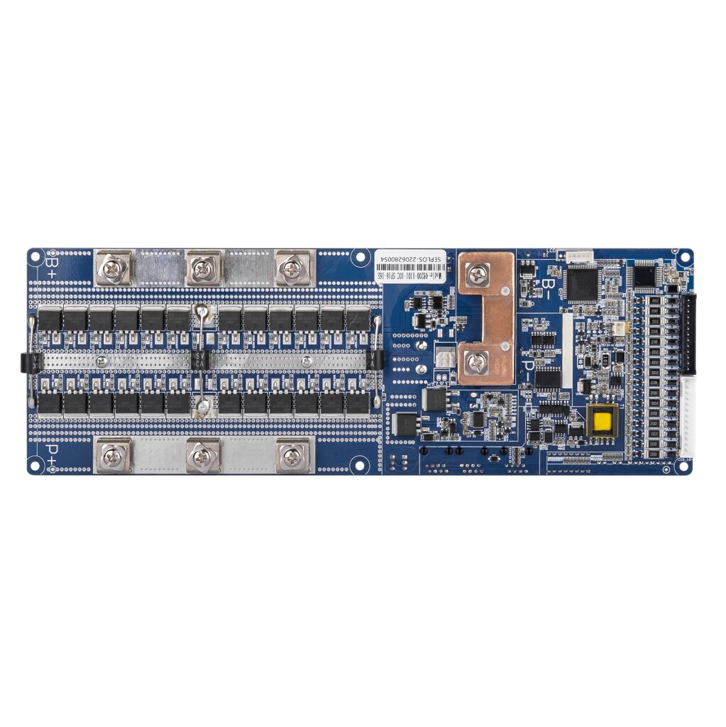 Система управления и балансировки BMS LiFePO4 24V 8S 100A симметрия, обеспечивает индивидуальный контроль напряжения и сопротивления каждого элемента аккумулятора, распределяет токи между составными аккумуляторной батареи во время зарядного процесса, контролирует ток разряда, определяет потерю ёмкости от дисбаланса, гарантирует безопасное подключение/отключение нагрузки.
