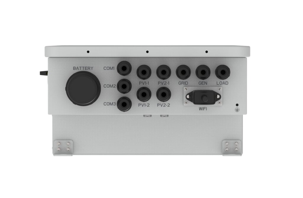Особенностью инвертора является его многофункциональный силовой порт. С помощью ручных настроек в меню инвертора он может быть использован как вход или выход, что предоставляет множество вариантов для настройки солнечных электростанций под различные потребности.