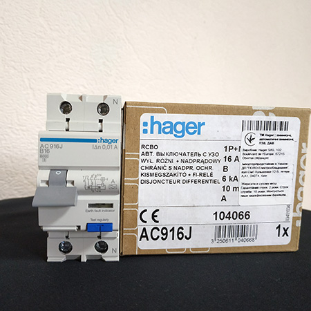 Hager AC916J дифавтомат 1P+N 6kA B-16A 10mA A