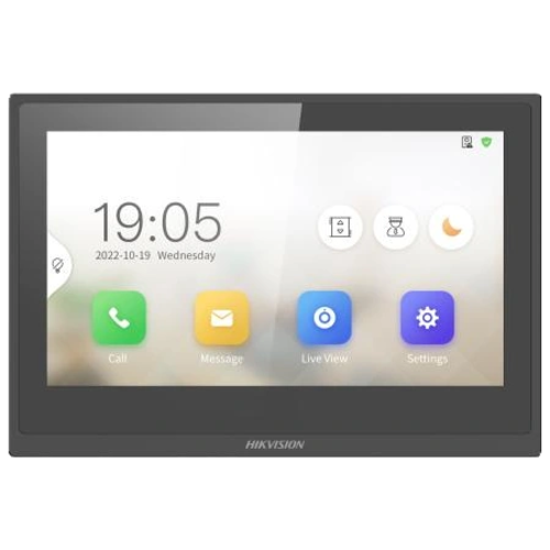 ● Функции: приложение Hik-Connect для мобильного управления, прием вызовов, открытие двери и просмотр в реальном времени, поддержка голосовых сообщений, когда нет ответа от внутренней станции;