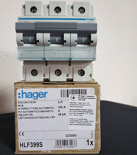 HAGER HLF399S 3P 10kA C-125A 4.5M автоматический выключатель