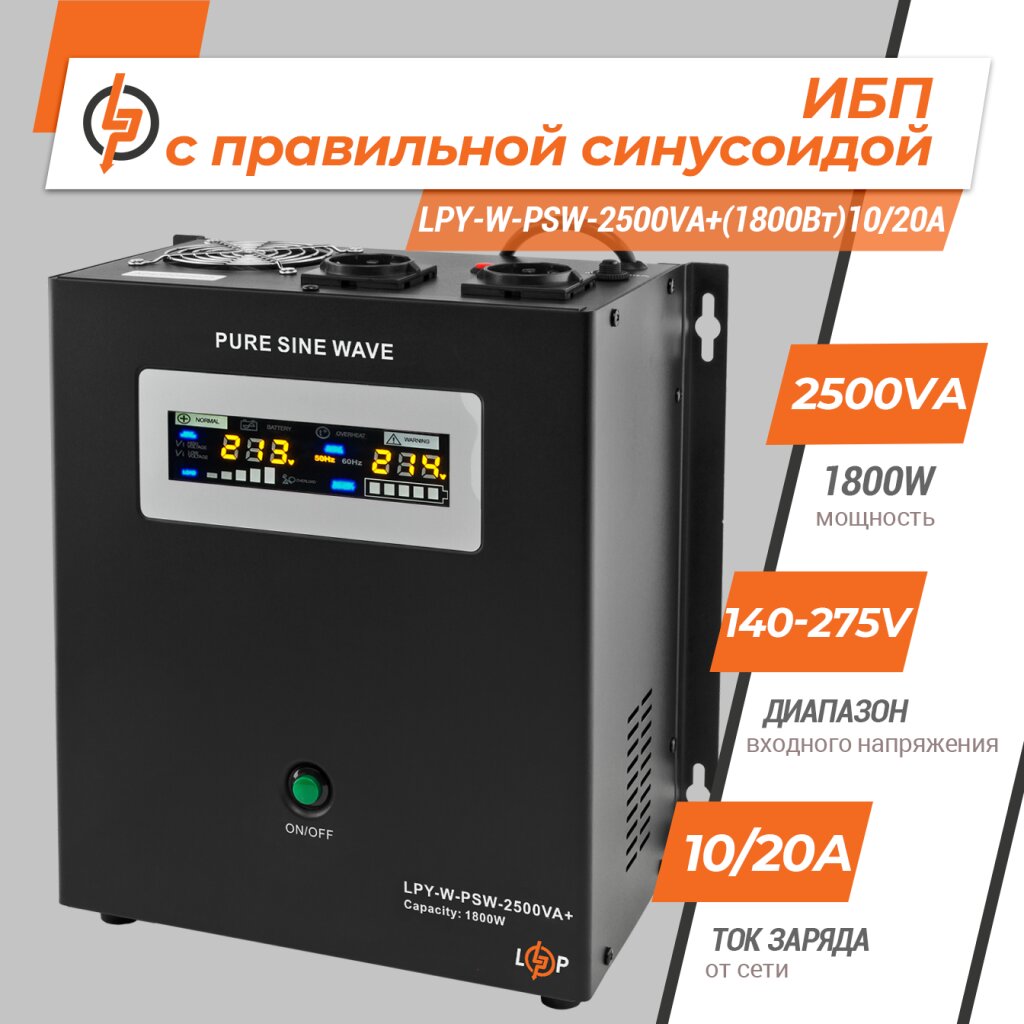 ИБП Logicpower LPY-W-PSW-2500VA+(1800Вт)10A/20A — ИБП/UPS с правильной синусоидой является высокотехнологичным и многофункциональным оборудованием, посредством которого обеспечивается резервное электропитание разнообразных технических устройств и электроники при внезапном или аварийном отключении питания электросети.