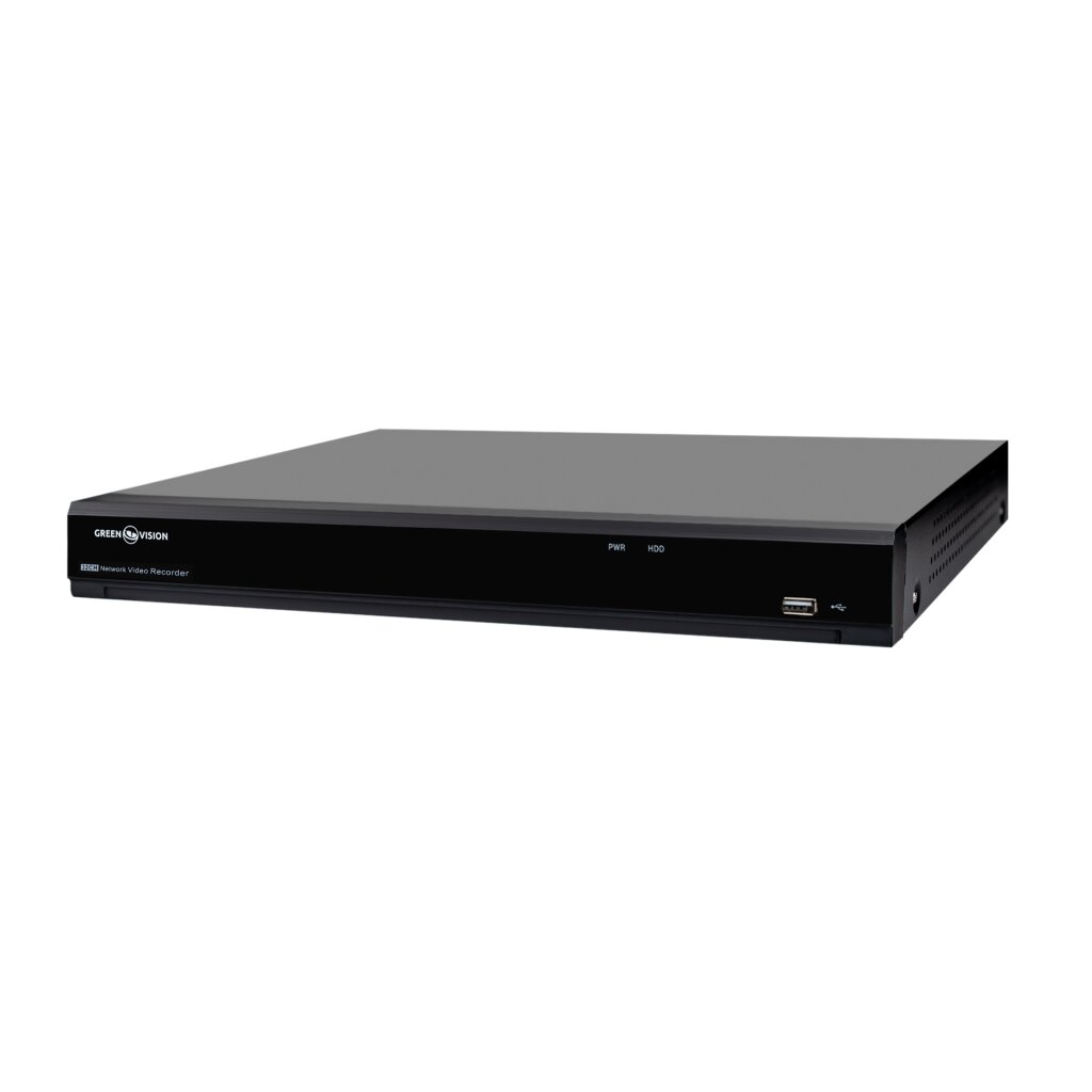 Сетевой видеорегистратор (NVR) для [Технология передачи видео] камер GreenVision позволяет одновременно записывать и воспроизводить видеопотоки одновременно с [Количество каналов IP] [Технология передачи видео] камер в разрешении (4000х3000, 3840х2160, 2592x1944, 2048x1536, 1920x1080, 1280x960, 1280x720).