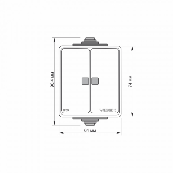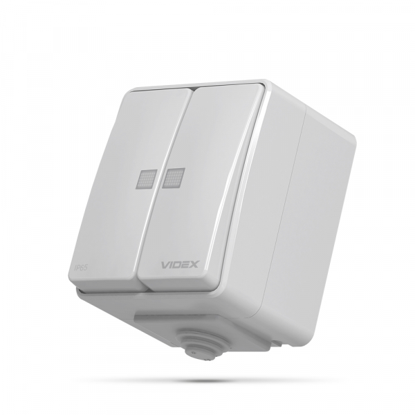 IP65 Вимикач зовнішній двохклавішний з підсвіткою сірий VIDEX BINERA