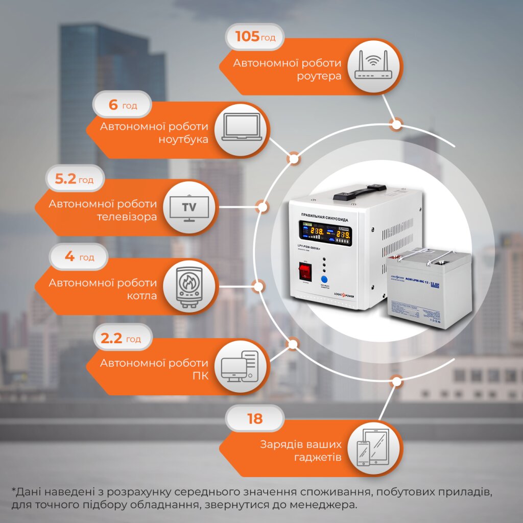 Комплект резервного питания для котла LogicPower ИБП 500 + мультигелевая батарея 720W
