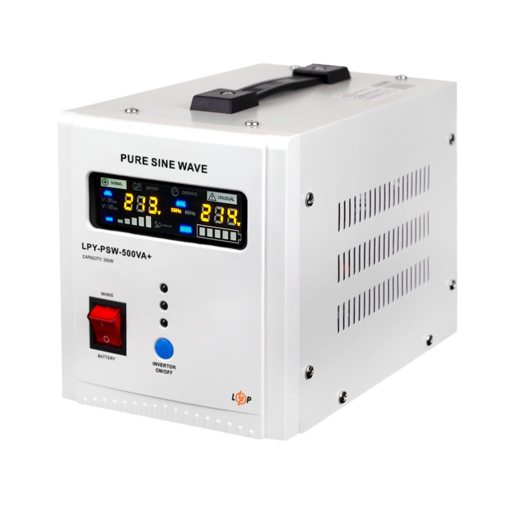 ИБП LPY-PSW-500VA+ имеет габаритные размеры 23.5х14.5х18 мм. Тип подключения к сети – евровилка, тип подключения нагрузки – евророзетка (2 штуки). На внешней стороне корпуса LСD экран отображает ход работы. Максимальный ток заряда – 10А.