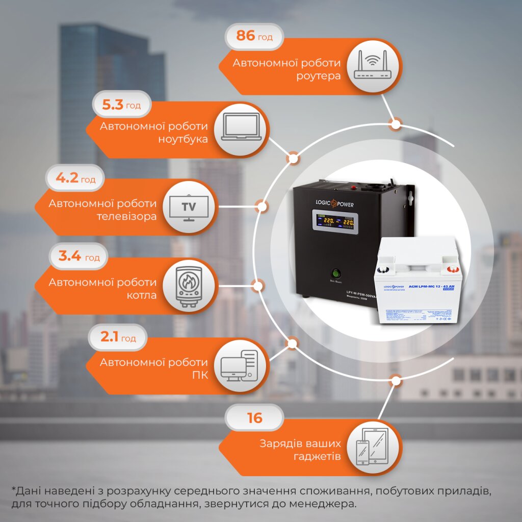 Комплект резервного питания для котла LogicPower ИБП W500 + мультигелевая батарея 590W