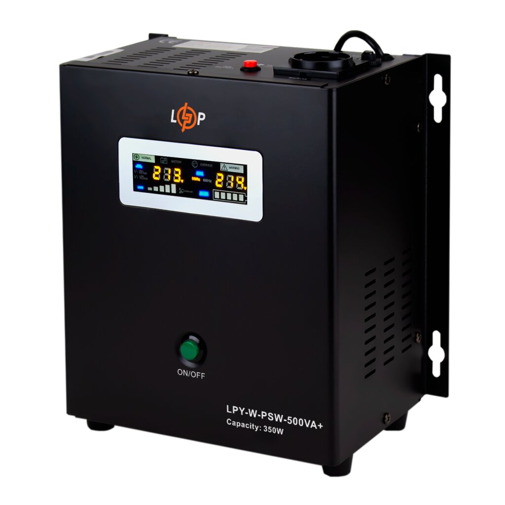 ИБП (источник бесперебойного питания) с правильной синусоидой оснащен функцией стабилизации напряжения (на входе - 140-275V, на выходе - 220V±10%). Мощность – 350 Вт. Устройство автоматически регулирует ток заряда внешней батареи. ИБП оборудован микропроцессорным управлением. Защищен от короткого замыкания, перегрузки, перенапряжения и т.д. Максимальный ток заряда – 20А. На корпусе предусмотрена LED индикация режимов работы. Тип подключения к сети – евровилка, тип подключения нагрузки – евророзетка (2 штуки). Материал изготовления корпуса металлический сплав. Цвет – черный. Размеры: 22х15.5х25.5 мм.