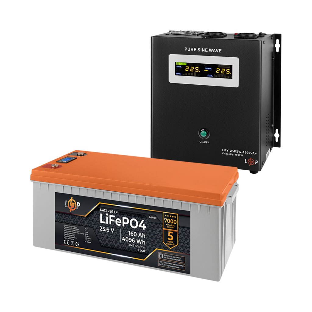 Комплект резервного питания LogicPower ИБП с правильной синусоидой 24V LPY-W-PSW-1500VA+(1050Вт)10A/15A + Аккумулятор LP LiFePO4 25,6V - 160 Ah (4096Wh) (BMS 150A/75А) пластик LCD для ИБП разработан и введен в эксплуатацию для обеспечения бесперебойного питания электрических газовых котлов, систем видеонаблюдения, компьютерной техники и других устройств, которые работают в режиме 24/7/365. Комплект может быть использован, как источник бесперебойного питания для бомбоубежища.