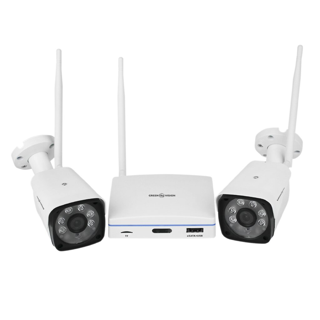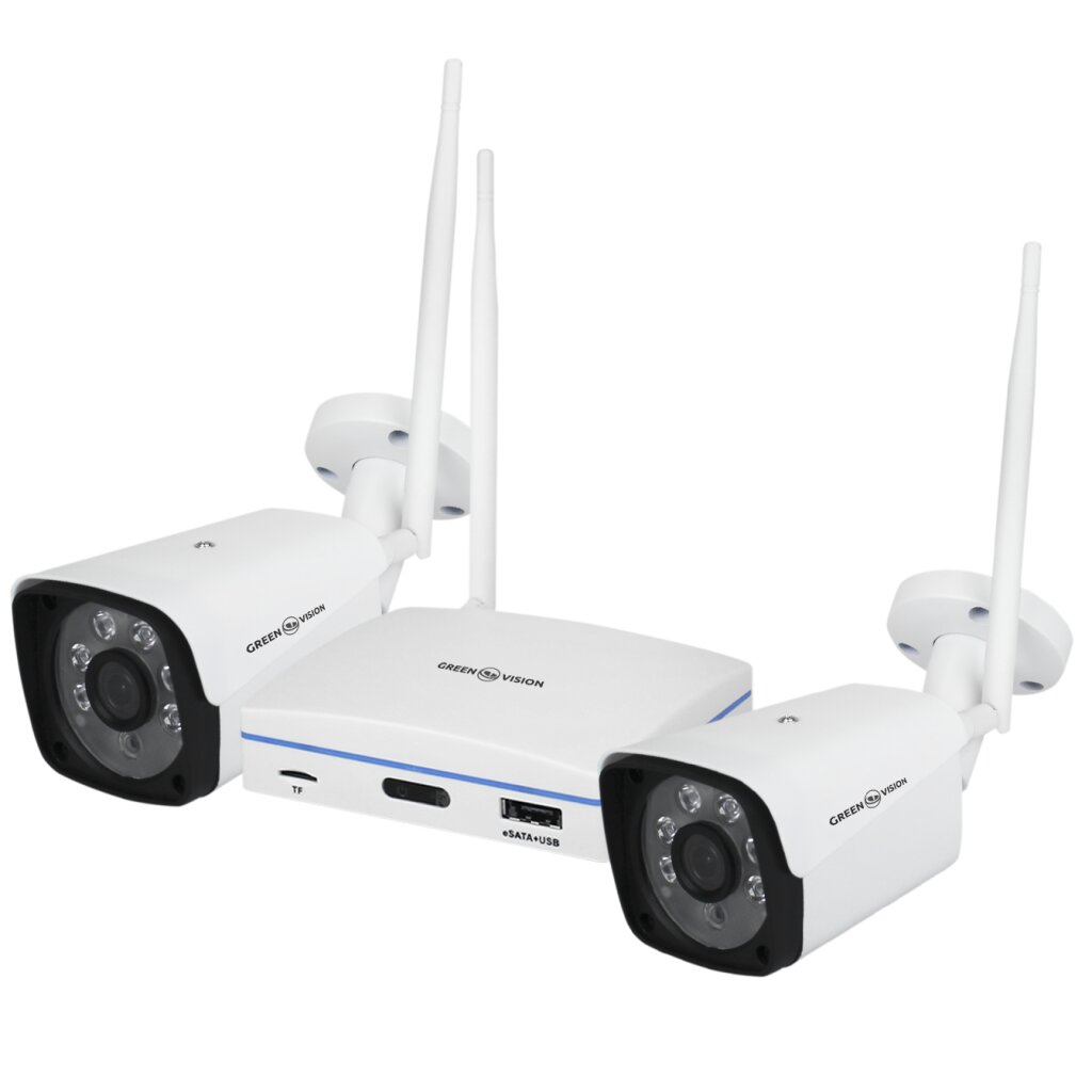 Wi-Fi комплект видеонаблюдения GreenVision предназначен для наружной установки. Универсальный режим подключения не требует прокладки выделенной линии сетевых кабелей.