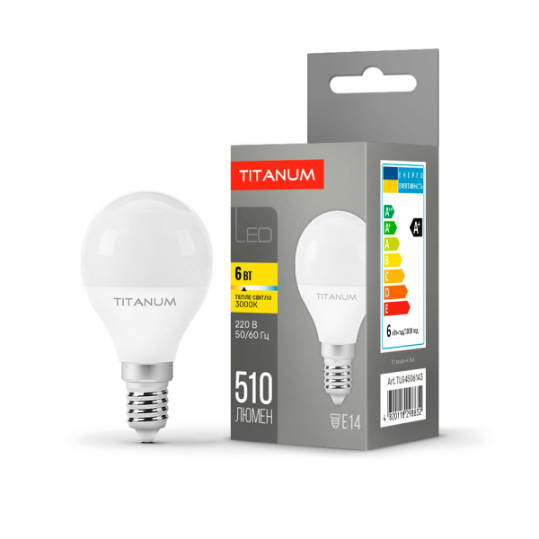 LED лампа TITANUM G45 6W E14 3000K - високотехнологічне джерело світла. Забезпечує рівний світловий потік і максимальну потужність з першої секунди роботи. Призначена для загального освітлення приміщень, торговельних залів і вітрин, промислових підприємств. Ідеальна для декоративного, місцевого і направленного освітлення. Використовується у всіх типах побутових світильників. Має тривалий термін експлуатації і високу стійкість до навантажень під час вмикання і вимикання.