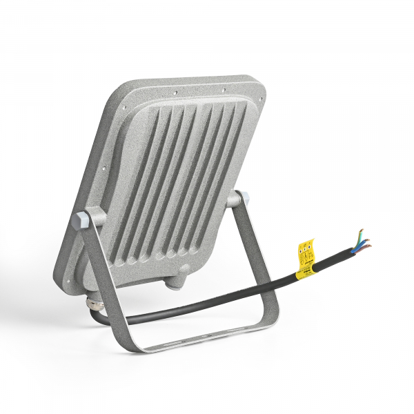 Корпус LED прожектора має сірий колір і чудово протистоїть волозі, дощу, снігопадам та іншим погодним опадам. Клас захисту IP65 і високий захист від ударів IK08. Спеціальне захисне покриття збереже прожектор від подряпин під час монтажу або інших неприємностей у процесі експлуатації.
