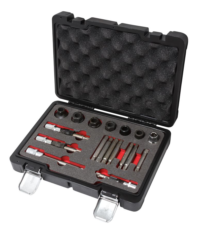 Набор для снятия шкивов генераторов 18 предметов(1/2":М10х140,М10х110,Т50х110мм;3/8":М10х90мм;10мм:М10х65мм,М8,М10,Т50,Т40,Н8,Н10х75мм;1/2"(F)х10мм(F)в кейсе. Forsage F-918G3AD