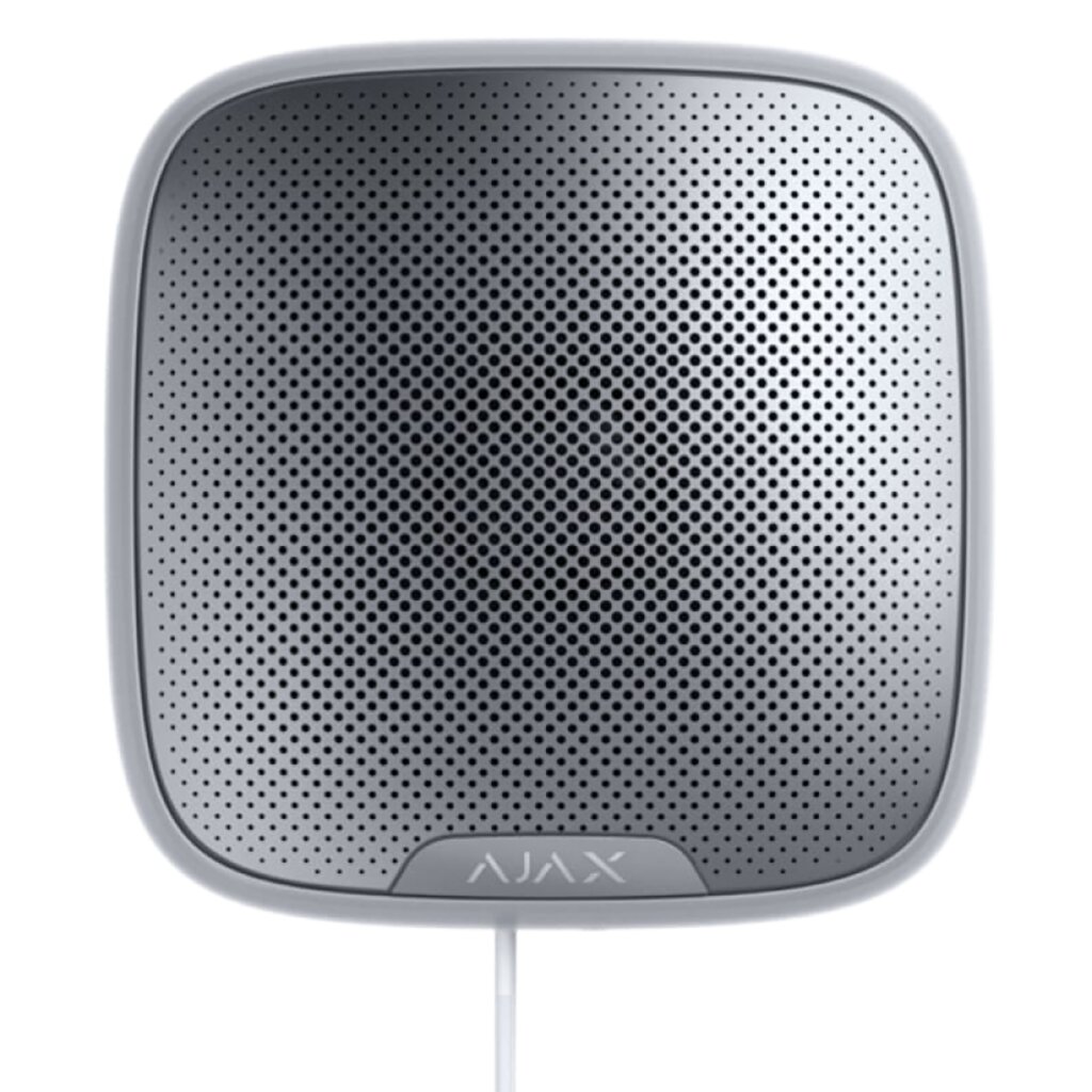 StreetSiren Fibra работает в составе системы Ajax, обмениваясь данными с хабом по защищённому протоколу проводной связи Fibra.