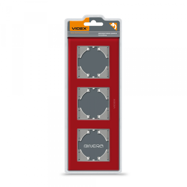 Рамка червоне скло на 3 місця горизонтальна VIDEX BINERA