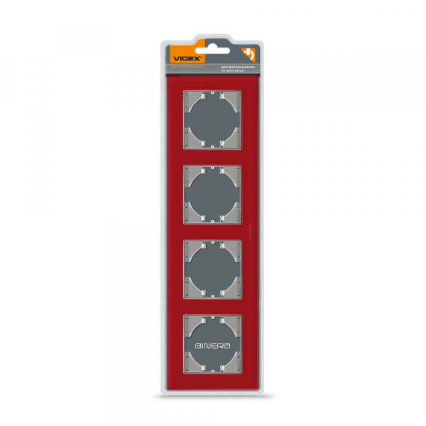 Рамка червоне скло на 4 місця горизонтальна VIDEX BINERA