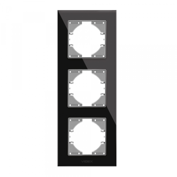 Рамка чорне скло на 3 місця вертикальна VIDEX BINERA