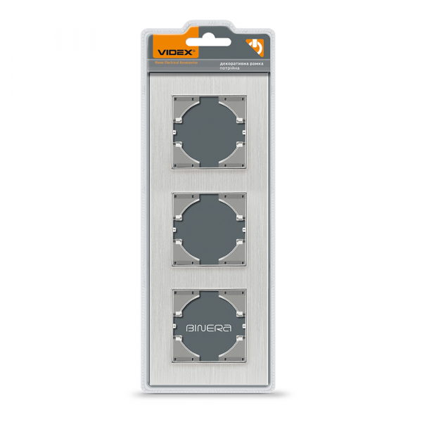 Рамка срібний алюміній на 3 місця вертикальна VIDEX BINERA