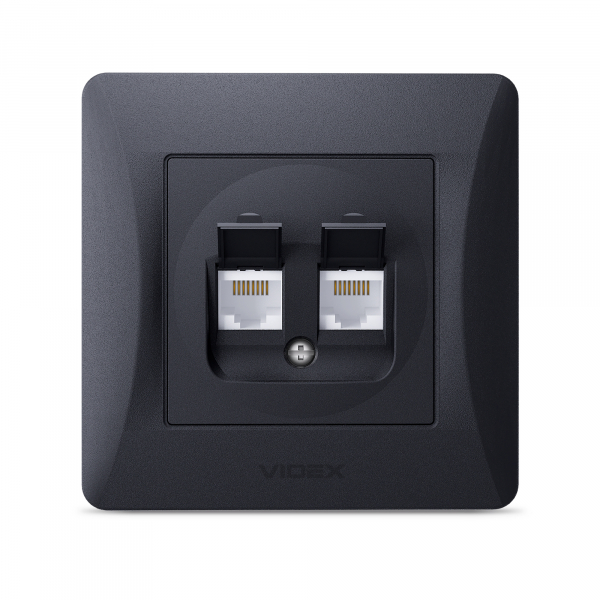 Розетка CAT6+CAT6 комп'ютерна подвійна чорний графіт VIDEX BINERA