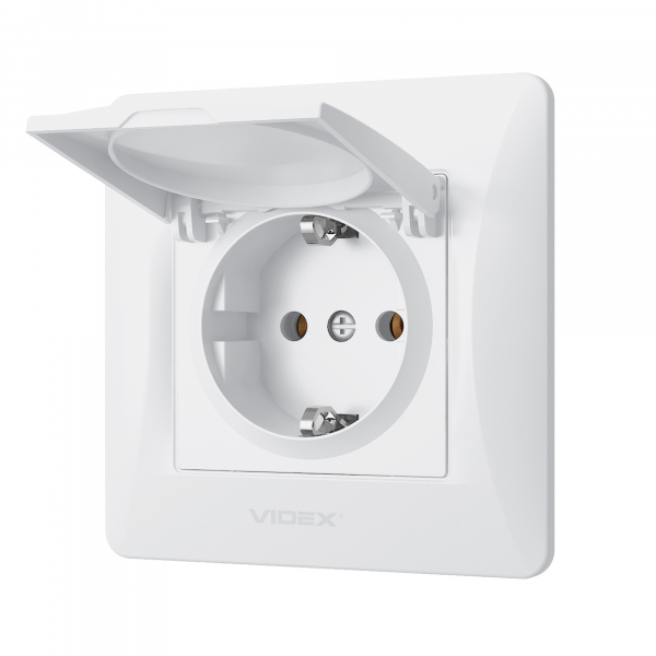 Розетка одинарна із заземленням та кришкою біла VIDEX BINERA