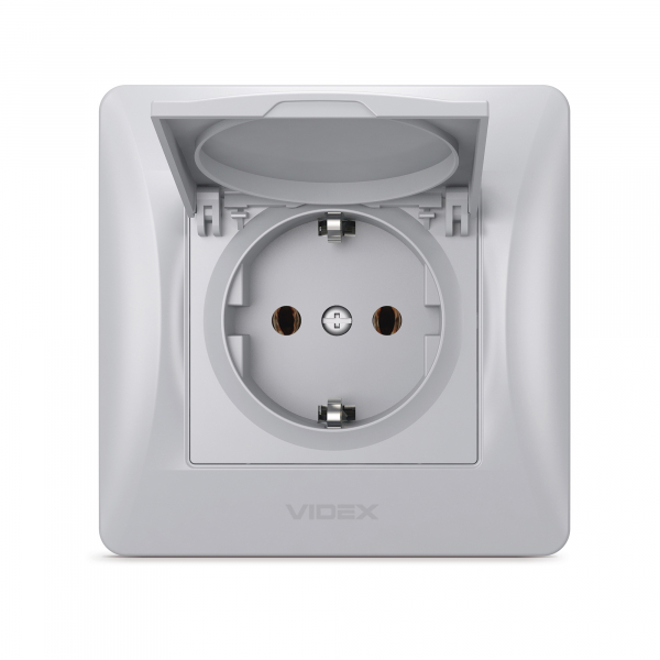 Розетка одинарна із заземленням та кришкою срібний шовк VIDEX BINERA