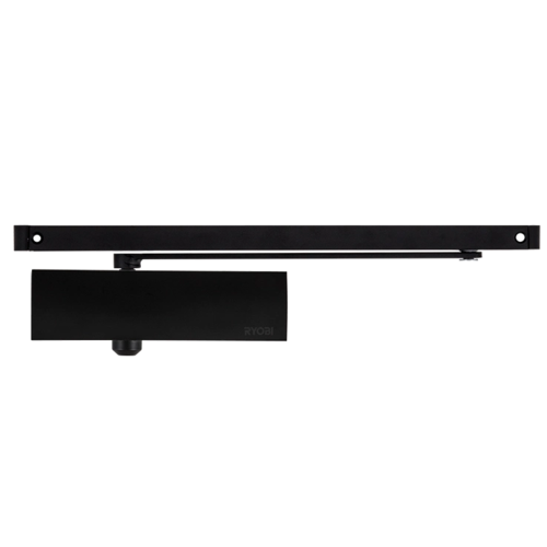 Доводчик двери RYOBI® серии 1200 модель D-1200T (Япония) накладного типа со скользящей тягой – предназначен для управления внутренней и легкой наружной дверью. Дотягиватели со скользящей тягой не позволяют открывать дверь шире, чем на 105-130° (в зависимости от места монтажа). Это обусловлено конструкцией самой скользящей тяги. Плоский дизайн европейского типа. Полностью контролирует весь цикл закрывания дверей с раздельно регулируемыми скоростями начального и конечного затвора (прихлопа). Дотягиватель соответствует 2 классу согласно EN1154. Доводчик с фиксацией открытого положения двери не может использоваться в составе противопожарной двери. Максимальный вес двери – 40кг, Максимальная ширина двери – 850мм.