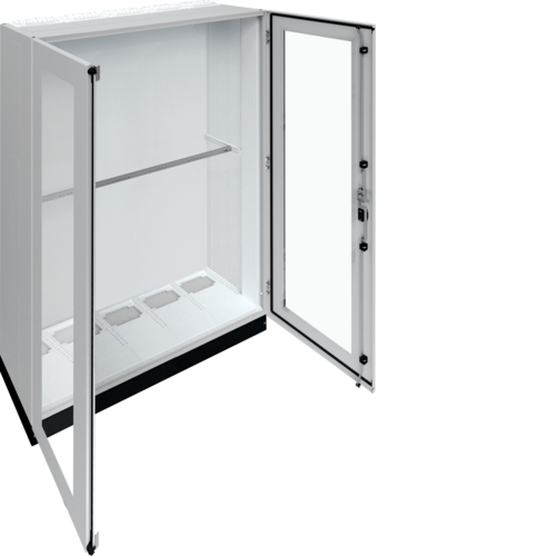 Щит на пол Univers, проз.дверь, IP55/II 1850x1300x400мм (+цоколь h=100мм) Степень защиты IP55, класс защиты I или II, зазоры и пути утечки в соответствии с DIN VDE 0110-1 / -2. Состоит из шкафа с дверцами из профилированной листовой стали толщиной 1,5 мм с порошковым покрытием.