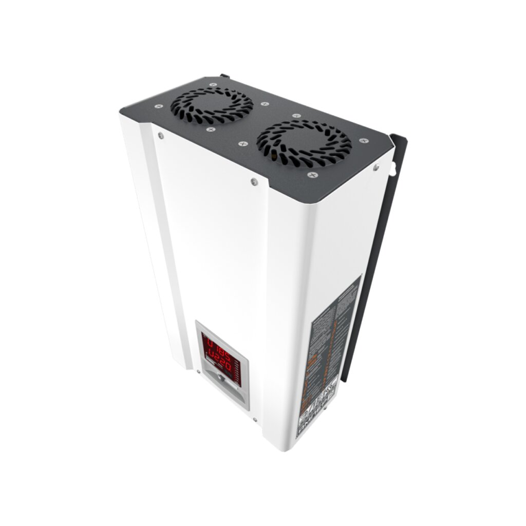 К особенностям данного стабилизатора можно отнести двойной светодиодный экран, линейную полосу загрузки, наличие электронного транзита (байпас), удобное расположение клеммной колодки для подключения на задней части корпуса, бесшумную работу за счет использования в качестве силовых ключей тиристоров.