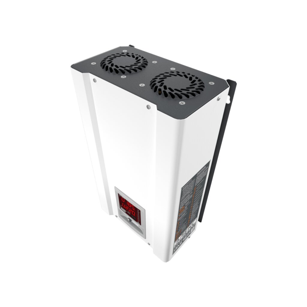 К особенностям данного стабилизатора можно отнести двойной светодиодный экран, линейную полосу загрузки, наличие электронного транзита (байпас), удобное расположение клеммной колодки для подключения на задней части корпуса, бесшумную работу за счет использования в качестве силовых ключей тиристоров.