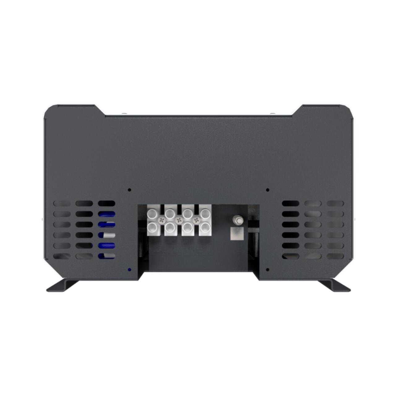 К особенностям данного стабилизатора можно отнести двойной светодиодный экран, линейную полосу загрузки, наличие электронного транзита (байпас), удобное расположение клеммной колодки для подключения на задней части корпуса, бесшумную работу за счет использования в качестве силовых ключей тиристоров.