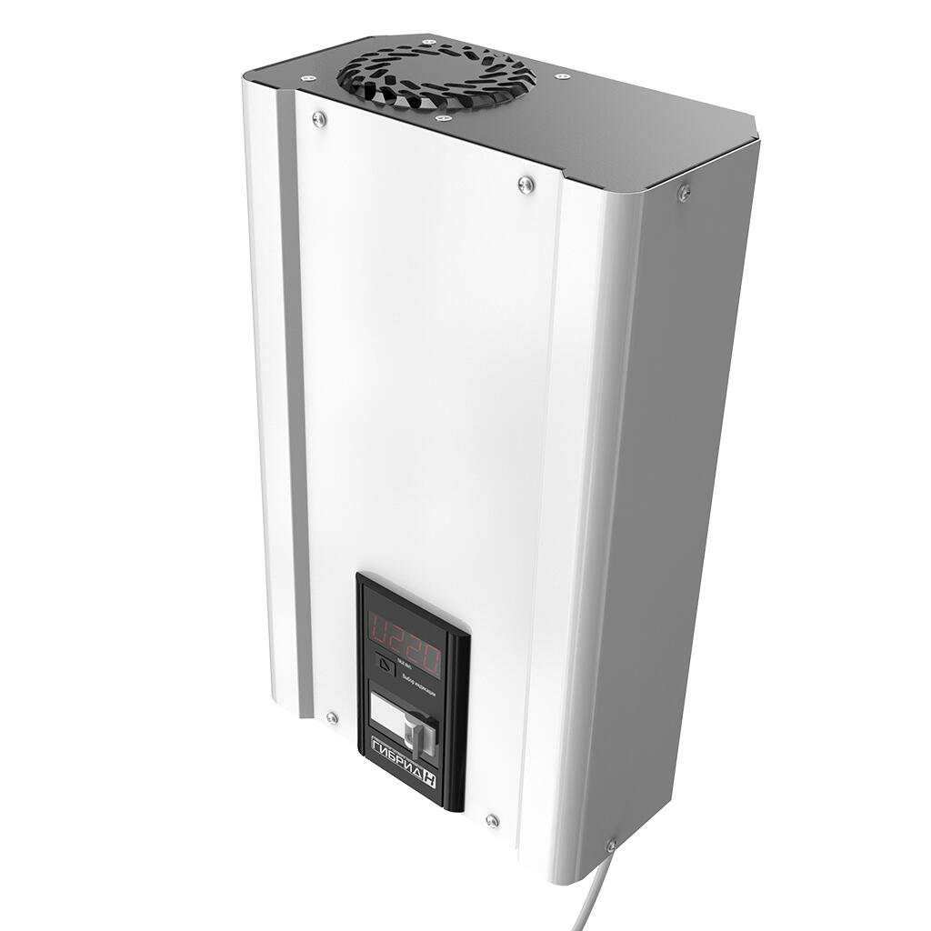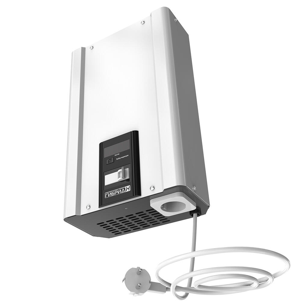 Устанавливать и эксплуатировать стабилизатор Гибрид рекомендуется в сухих и отапливаемых помещениях. Настенную установку рекомендуется производить в вертикальном положении (вентиляторами вверх), оставив сверху и снизу 10-15 см для охлаждения. Подключение осуществляется к существующей проводке через клеммную колодку для аппаратов от 5.5 до 9 кВт и через встроенный шнур с вилкой и розеткой на корпусе стабилизатора для моделей 2.2 и 3.5 кВт.