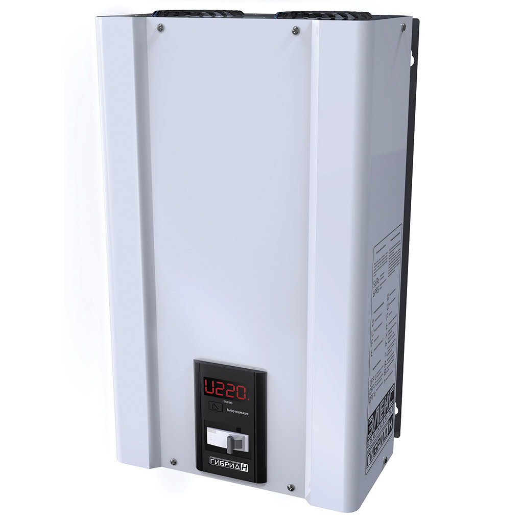 Устанавливать и эксплуатировать стабилизатор Гибрид рекомендуется в сухих и отапливаемых помещениях. Настенную установку рекомендуется производить в вертикальном положении (вентиляторами вверх), оставив сверху и снизу 10-15 см для охлаждения. Подключение осуществляется к существующей проводке через клеммную колодку для аппаратов от 5.5 до 9 кВт и через встроенный шнур с вилкой и розеткой на корпусе стабилизатора для моделей 2.2 и 3.5 кВт.