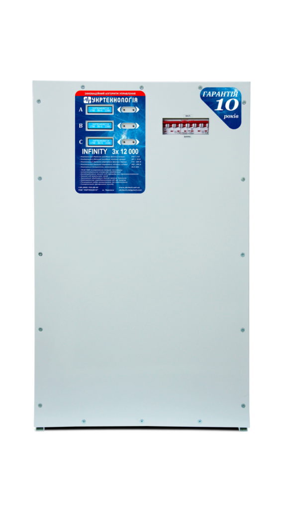 Стабилизатор напряжения теристорные INFINITY 3х12 (36кВА) 220В, стабилизация 200-495, 16 ступенейСтабилизатор напряжения теристорные INFINITY 3х12 (36кВА) 220В, стабилизация 200-495, 16 ступеней