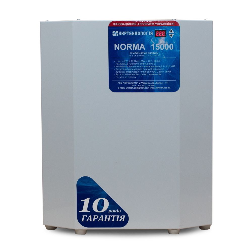 • высокое качество сборки. Основные технические характеристики стабилизаторов Norma: • Автоматическое отключение от сети при превышении 267 В напряжения.