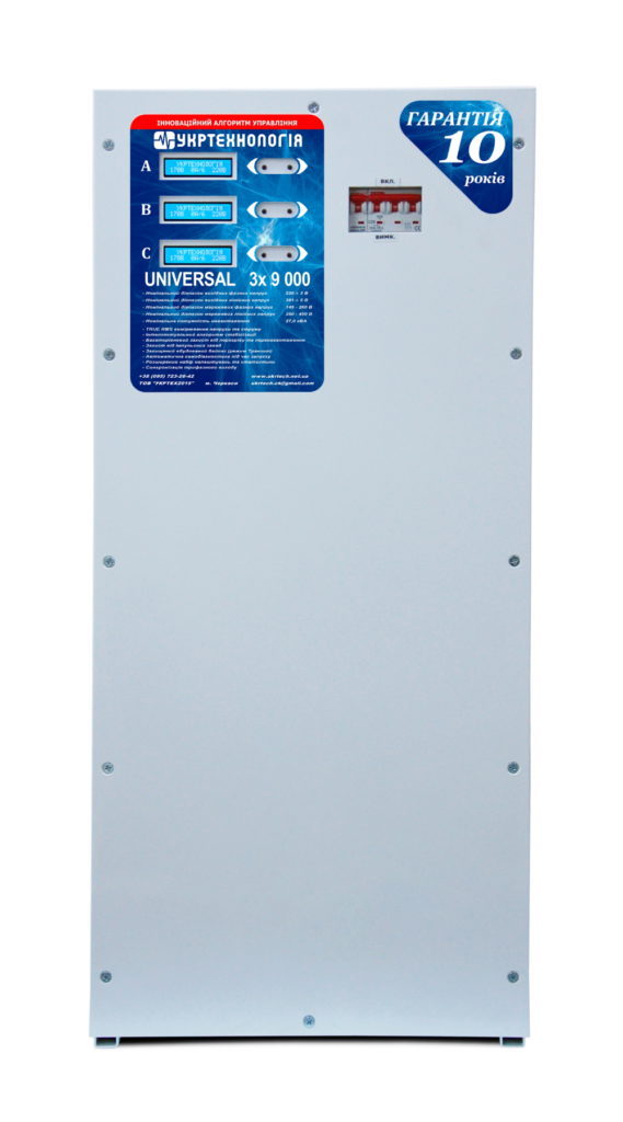 Стабилизатор напряжения теристорный UNIVERSAL 3×9 (27кВА) 220В, стабилизация 250÷450, 36 ступеней