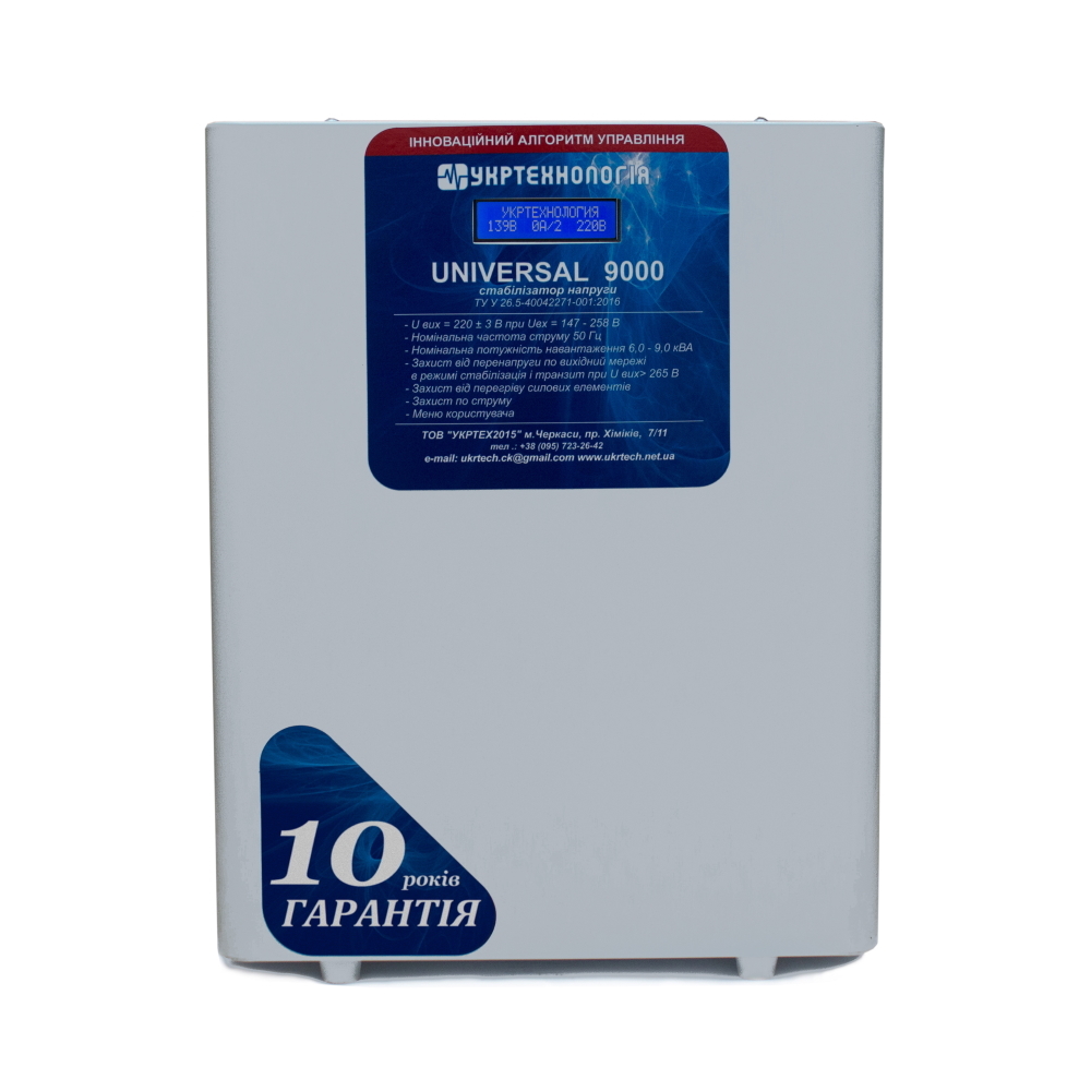 • Вес: 21 кг Основные технические характеристики стабилизаторов Universal: • Автоматическое отключение от сети при повышенном входном напряжении.
