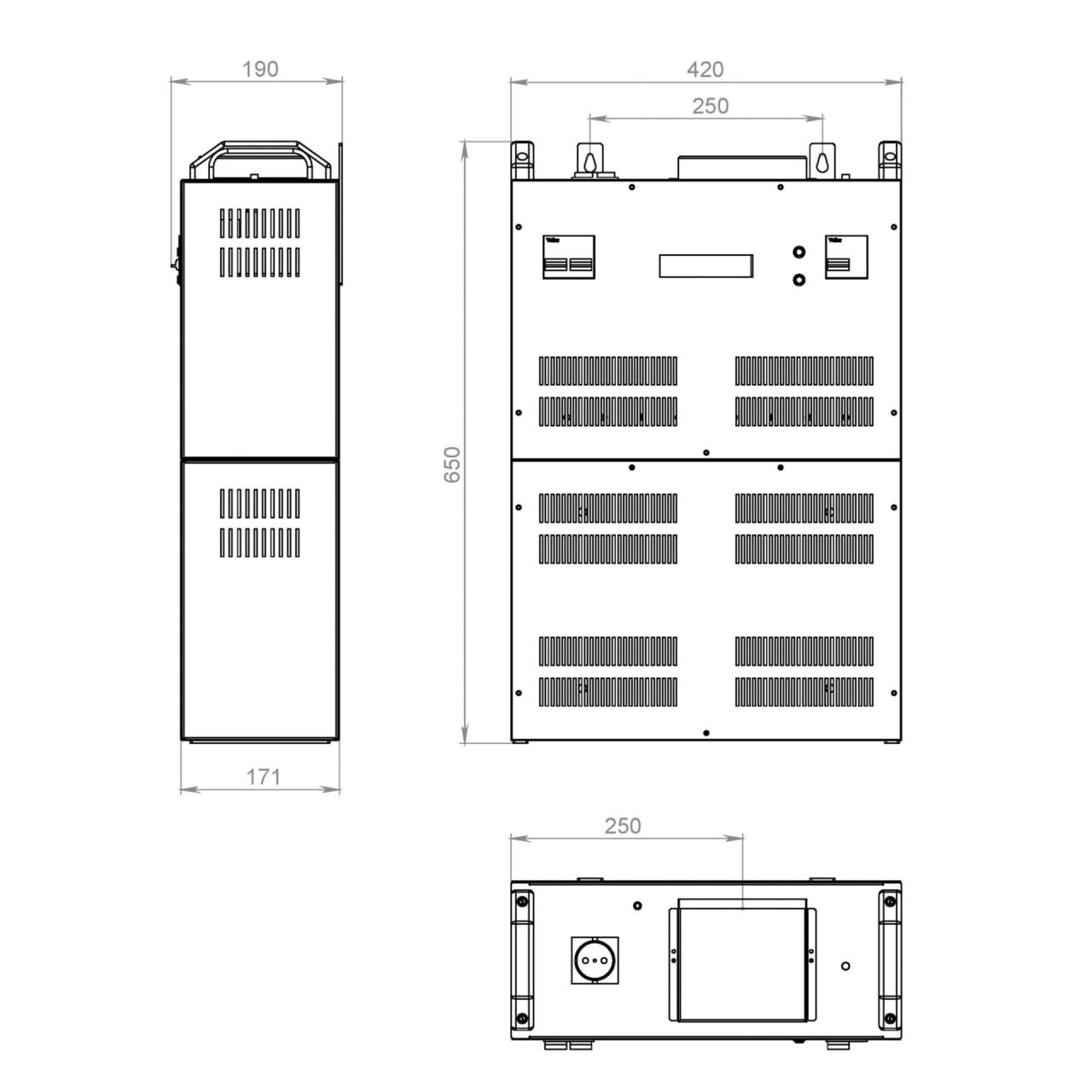 Данный стабилизатор Volter рассчитан на непрерывный круглосуточный режим работы, устанавливается стационарно на весь дом (квартиру, офис, производственное оборудование). Подключается с помощью клеммника, в разрыв фазы на вводе, сразу после счетчика.