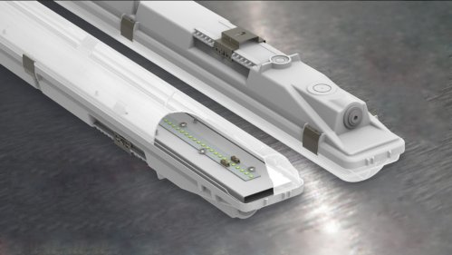 Корпус светильника изготовлен из светло-серого (RAL 7035) полиэстера, армированного стекловолокном, что обеспечивает высокую термостойкость, механическую прочность и устойчивость к воздействию химических веществ и погодных условий. Рассеиватель выполнен из опалового поликарбоната, обладающего высокой механической прочностью и устойчивостью к нагреву и ударам. Между рассеивателем и корпусом установлена уплотнительная прокладка из силиконовой пены, обеспечивающая герметичность конструкции.