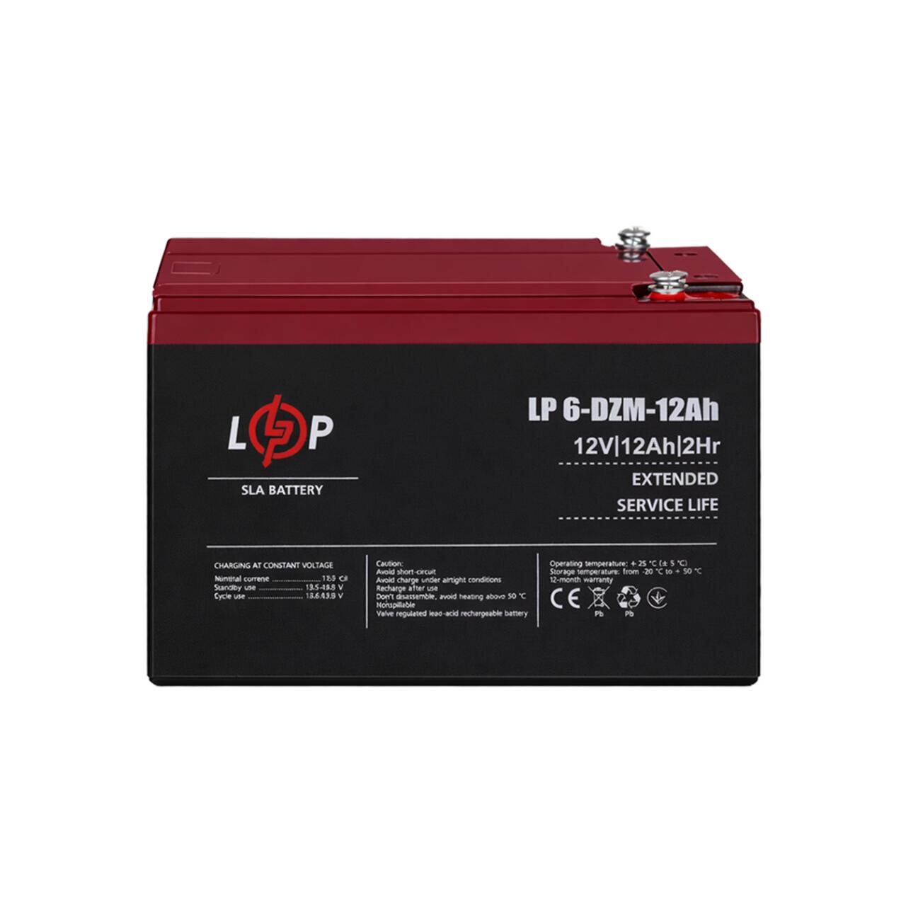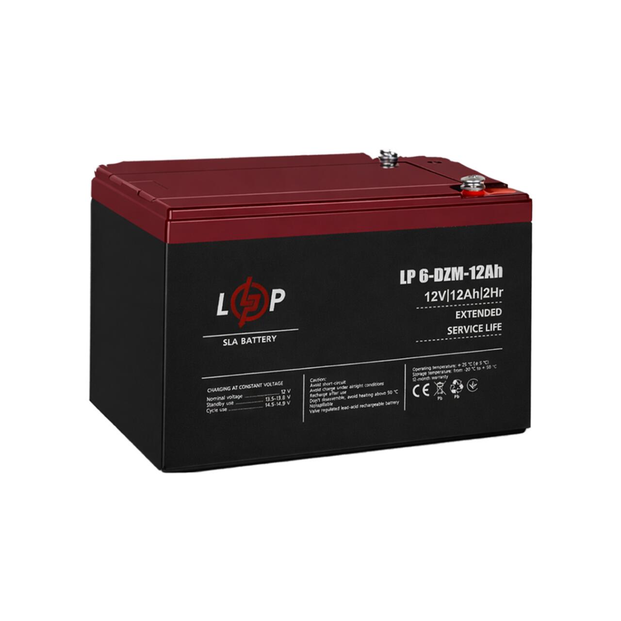 Тяговый свинцово-кислотный AGM аккумулятор LP 6-DZM-12 Ah - под Болт М5