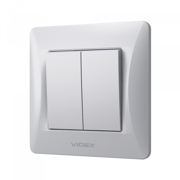 Вимикач двоклавішний срібний шовк VIDEX BINERAВимикач двоклавішний срібний шовк VIDEX BINERA