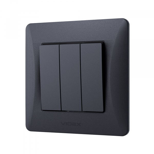 Вимикач трьохклавішний чорний графіт VIDEX BINERAВимикач трьохклавішний чорний графіт VIDEX BINERA